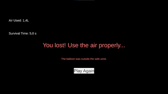 You are a balloon in this vile world. Your life purpose is to survive for 20 seconds. Be smart with your air. Avoid popping, be careful about safe zones.
